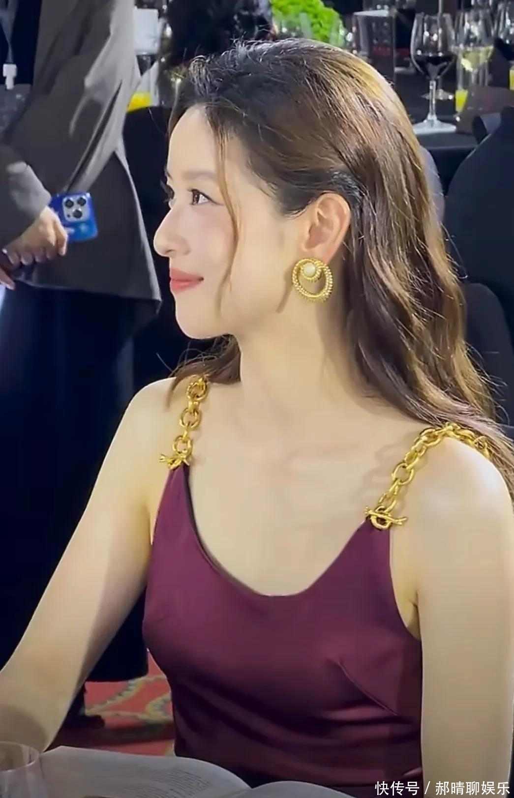 11月12号晚上,在北京UCCA慈善晚会上,章泽天穿了一条酒红色缎面吊带长裙,佩戴着黄金耳饰,妆容显得很淡雅,笑起来的样子十分自然,她上台发言的时候,台下有不少人一直注视着她,这身打扮和她平时给人的感觉不太一样,让人感到有些意外。